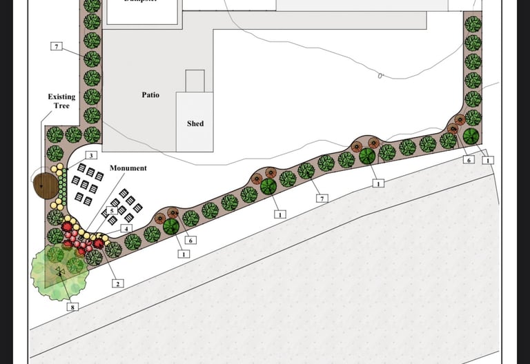 Transform your yard with majestic trees, colorful flower beds, and stunning paver designs* tailored to you. Below is a design* for a commercial property that will bring to life the vested parties' vision, not just on paper but in reality.